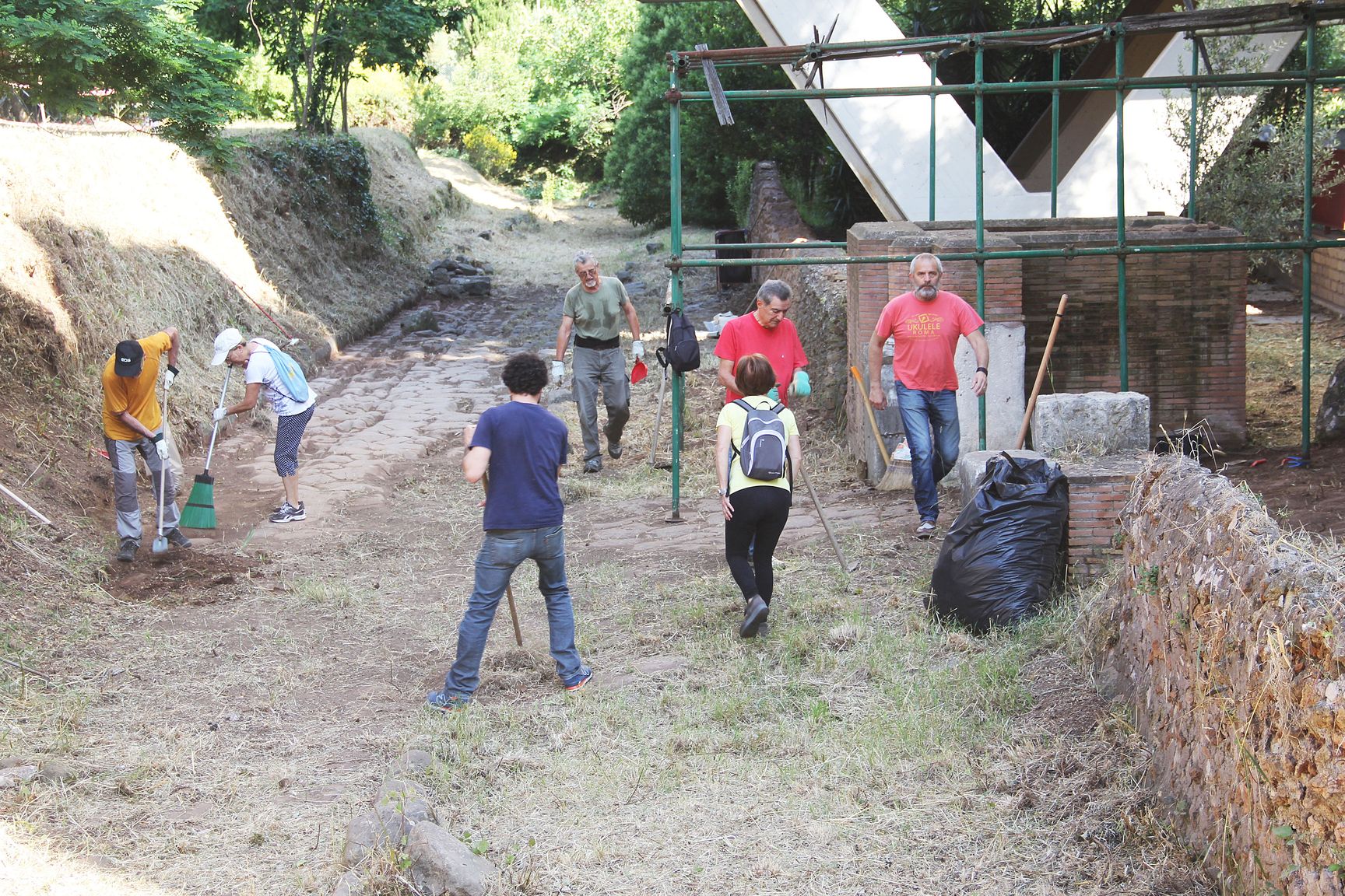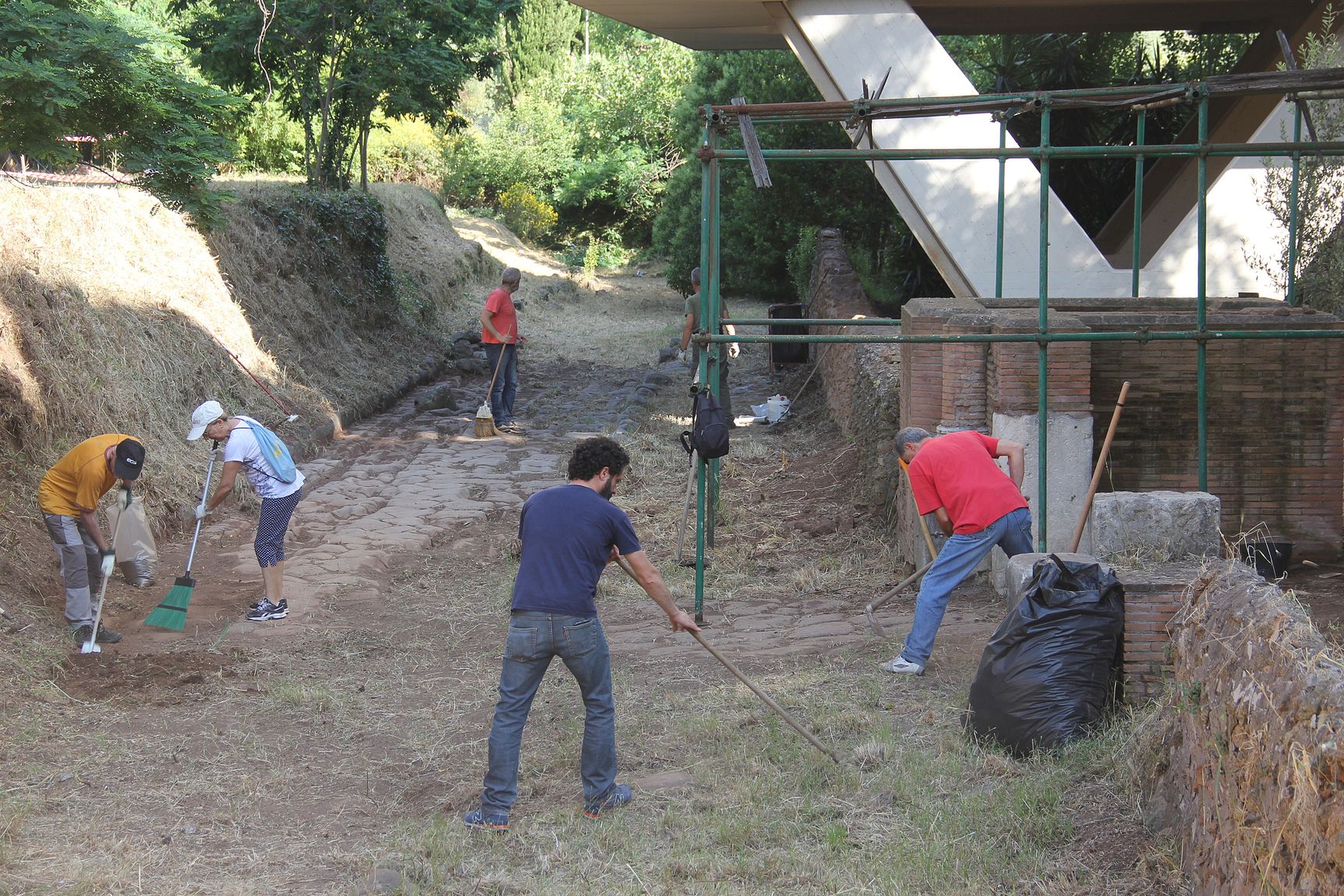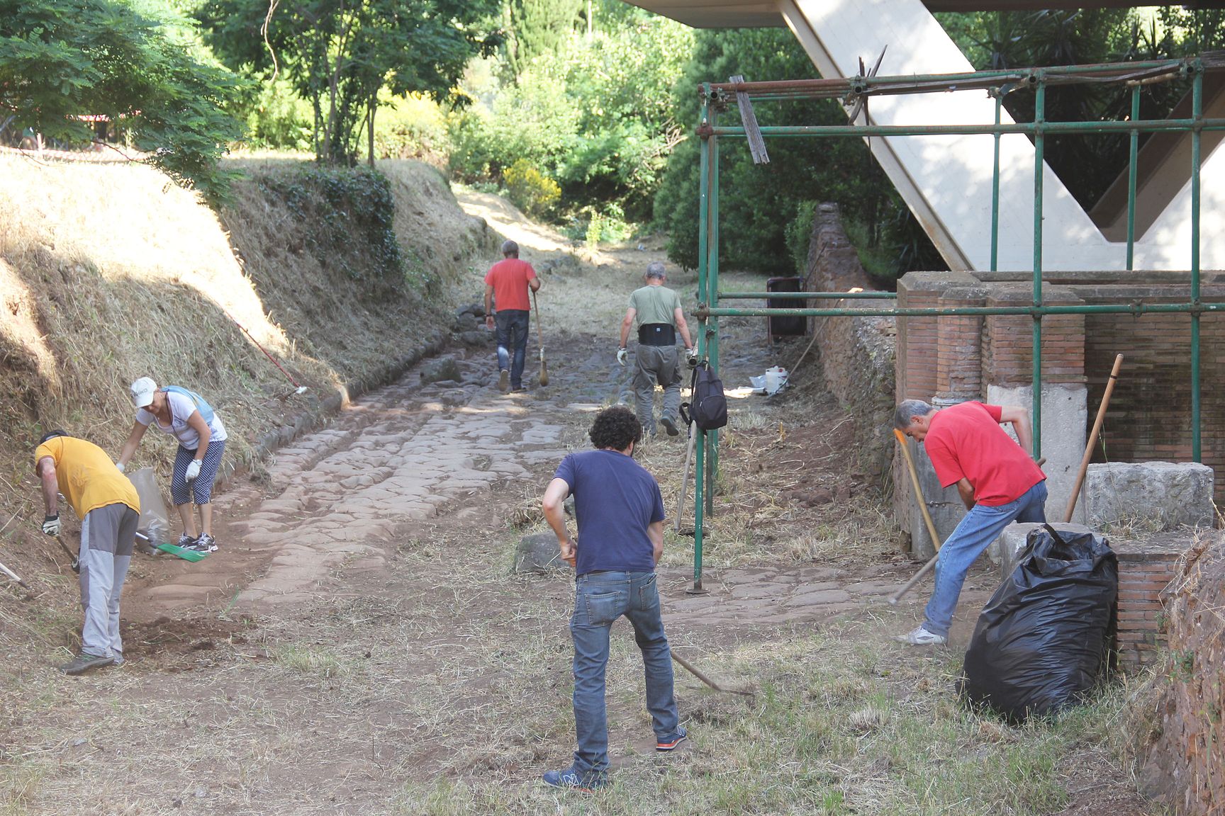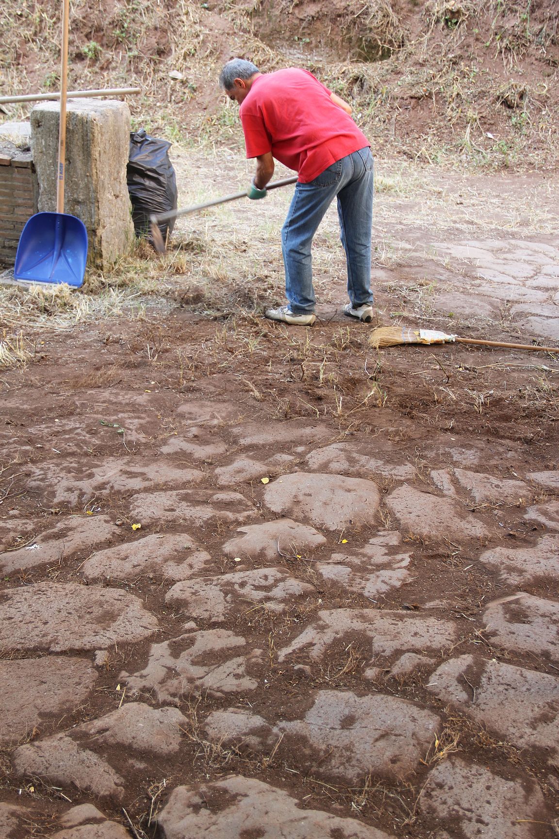 Pulizia basolato via di Grotta Perfetta