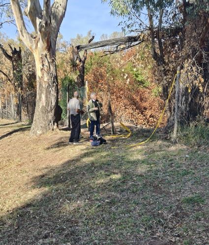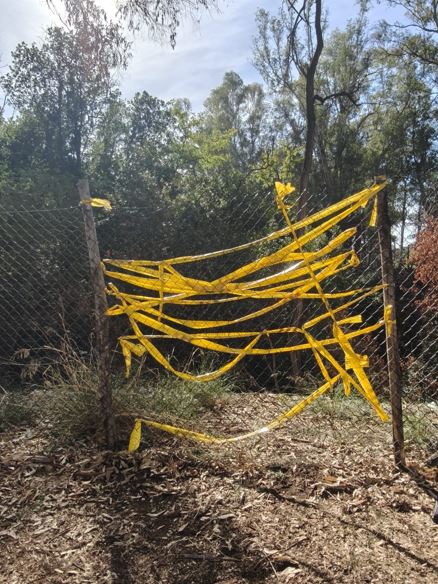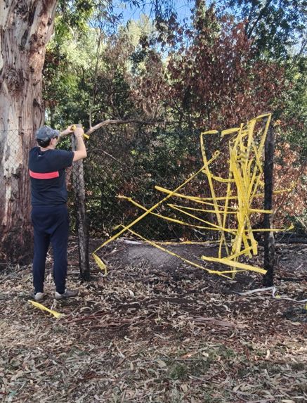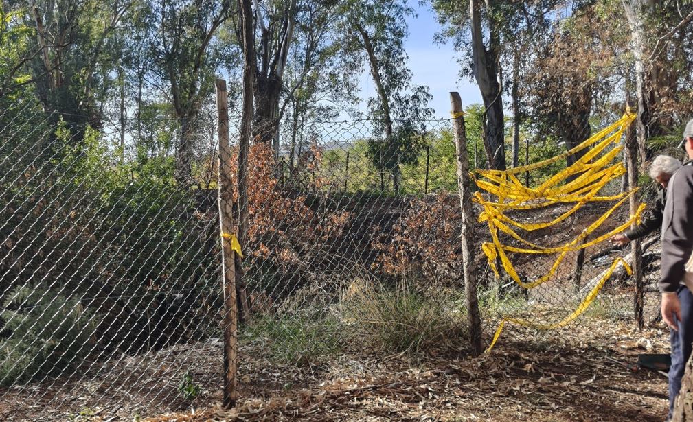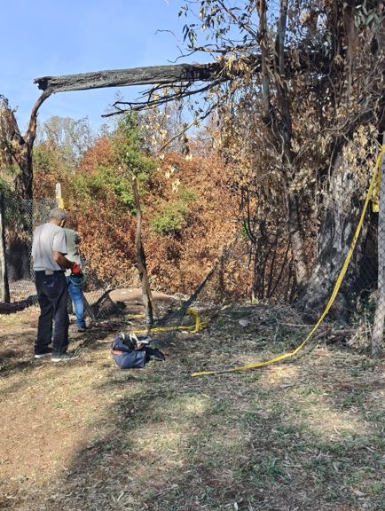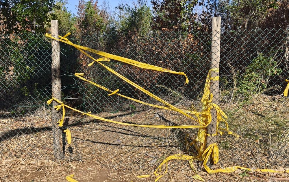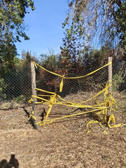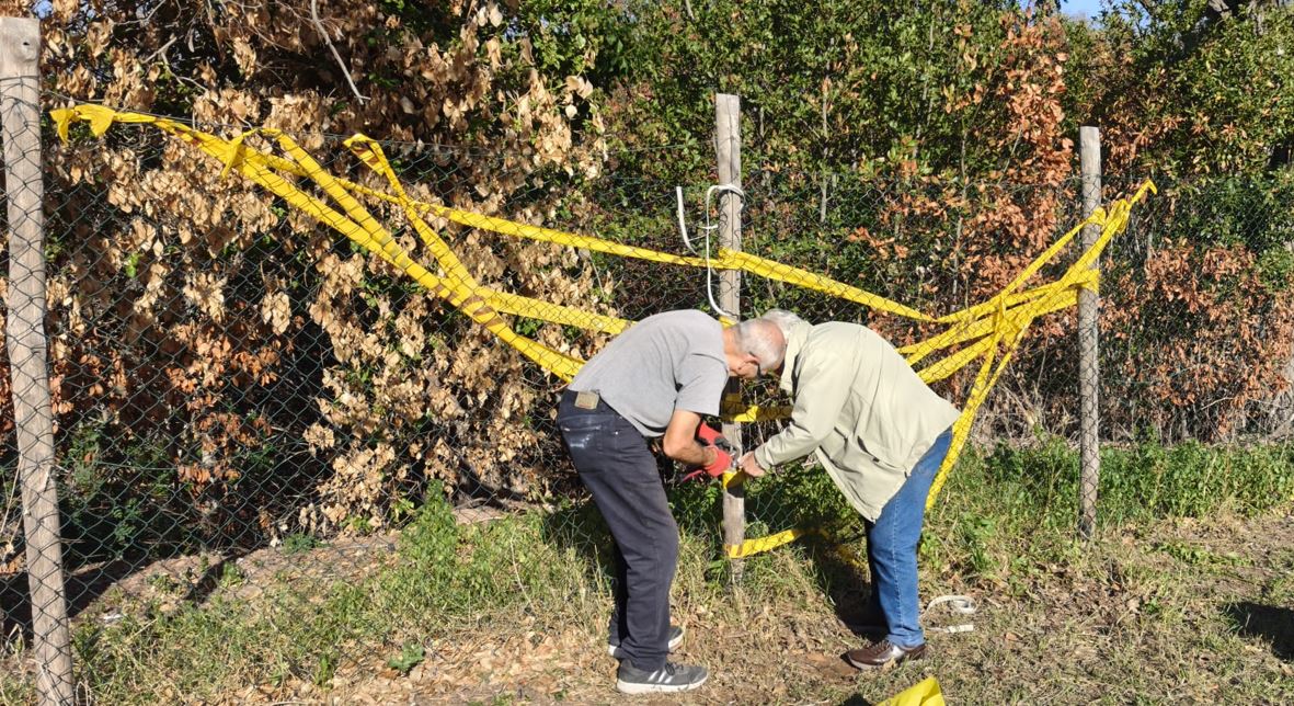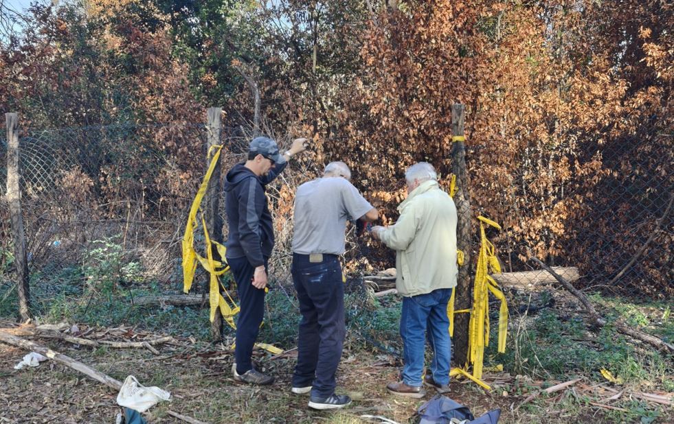 Volontari al lavoro per ripristinare in modo provvisorio le recinzioni del parco del Forte Ardeatina divelte dai VV.F. per spegnere l'incendio del luglio scorso.